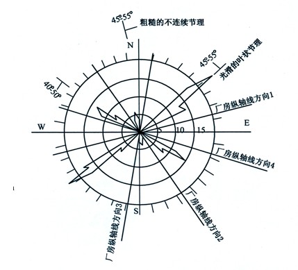 1.下图是某工程电站地下厂房所在位置的节理玫瑰图,现依据该玫瑰图拟定了四条厂房纵轴线,下列选项中应优先采纳哪一项?()